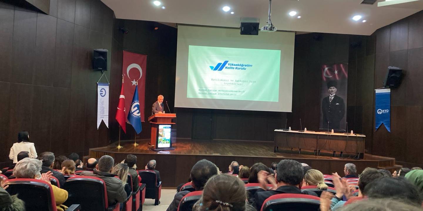 Rektör Yardımcımız Prof. Dr. Cemil RAKICI ve akademisyenlerimizin katılımyla düzenlenen konferansta, yükseköğretim sürecinin önemli bir parçası olan “Kalite Güvence Sistemi”nin önemine değinen ve akreditasyon sürecinde tamamlanması gereken aşamaların ve gerekliliklerin önemine vurgu yapan Prof. Dr. Ümit KOCABIÇAK konuşmasında, “Planla, uygula, kontrol et, önlem al dörtlüsünü sağlayan kurumlarımız, 2 yıl ya da 5 yıl akreditasyon alıyor. Peki, kurumsal akreditasyon alan üniversitede ne oluyor? Tanınırlığı artıyor, uluslararasılaşma sürecinde problem yaşamıyor, üniversiteler arası rekabette öne geçmiş oluyor ve yurt içinde ve yurt dışında daha kolay istihdam olanağı sağlıyor. Şu an Türkiye’de 53 üniversite kurumsal akreditasyona sahip. Bu oran %25’tir. Kurumsal akreditasyona sahip üniversiteler, bu 53 kurumun yer aldığı veritabanına girebiliyor ve orada bizim verdiğimiz her akreditasyonun Avrupa’da da karşılık bulduğunu görüyor.” sözlerine yer verdi.