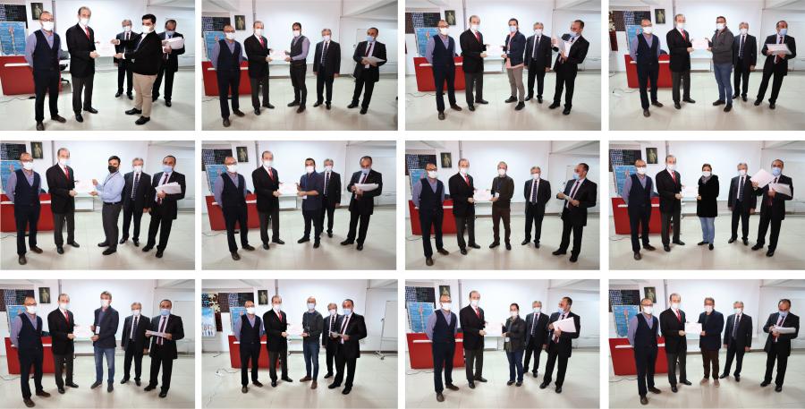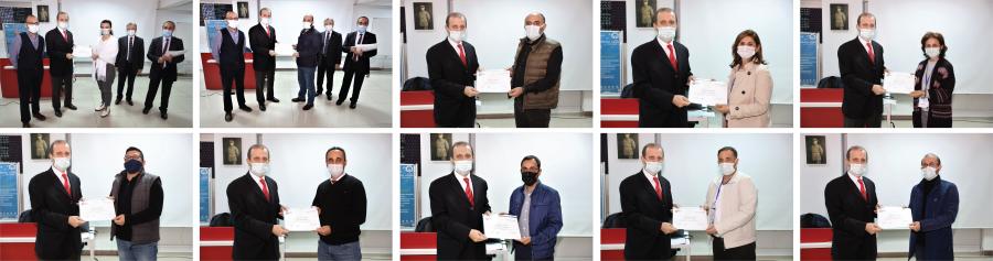 Rektörümüz Prof. Dr. Hamdullah ÇUVALCI’nın katılımcılara katılım belgesi vermesi ile tamamlanan eğitime katılan akademisyenlerimize ve eğitmenlere teşekkür eder, ilgili çalışmanın başarılı proje başvurularına aracı olmasını dileriz.