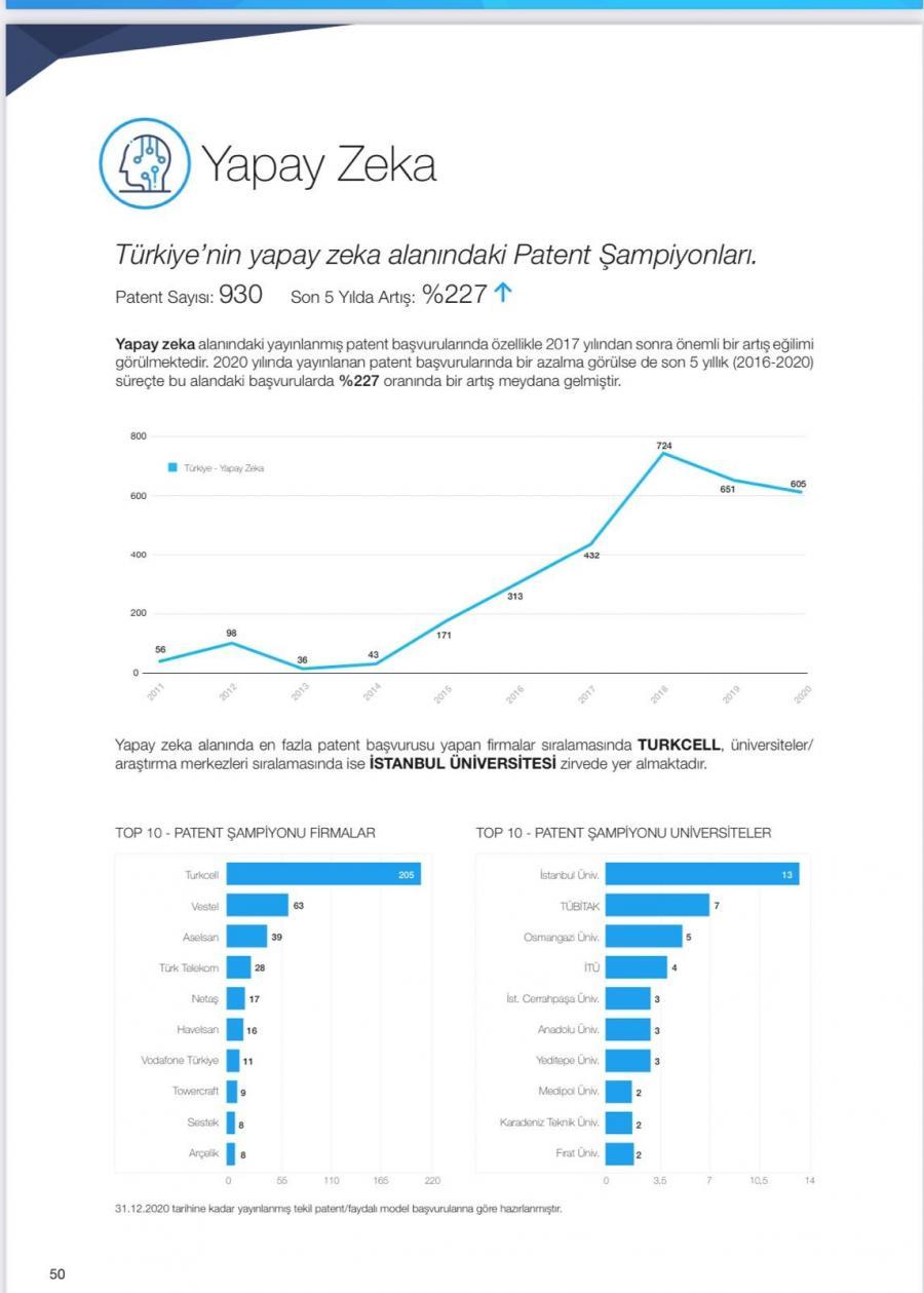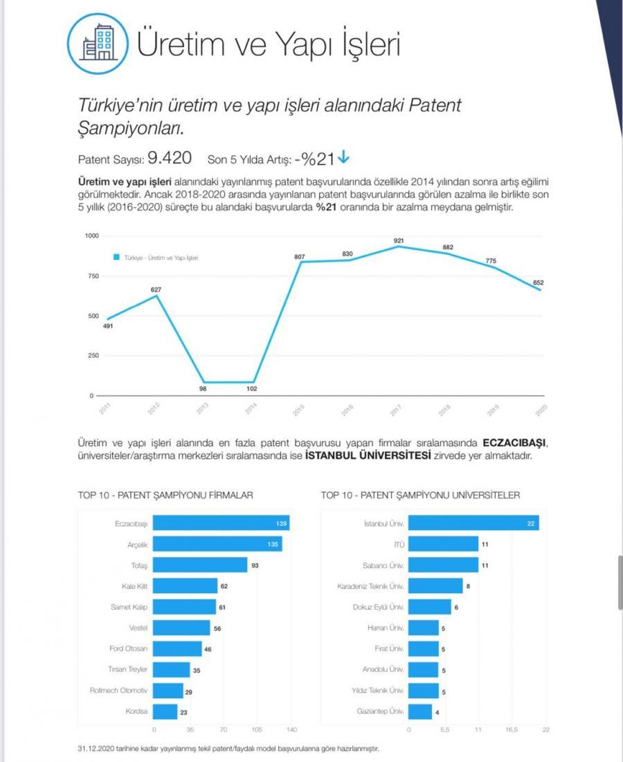 Üniversitemiz, Patent Effect tarafından yayınlanan 2020 Türkiye Patent Raporu'na göre, Türkiye’deki üniversiteler arasında “Yapay Zeka” / “Çevre ve Su” / “Üretim ve Yapı İşleri” konularında ilk 10’da yer aldı.