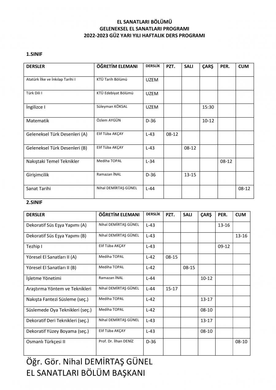 2022-2023 Güz Dönemi Ders Programı