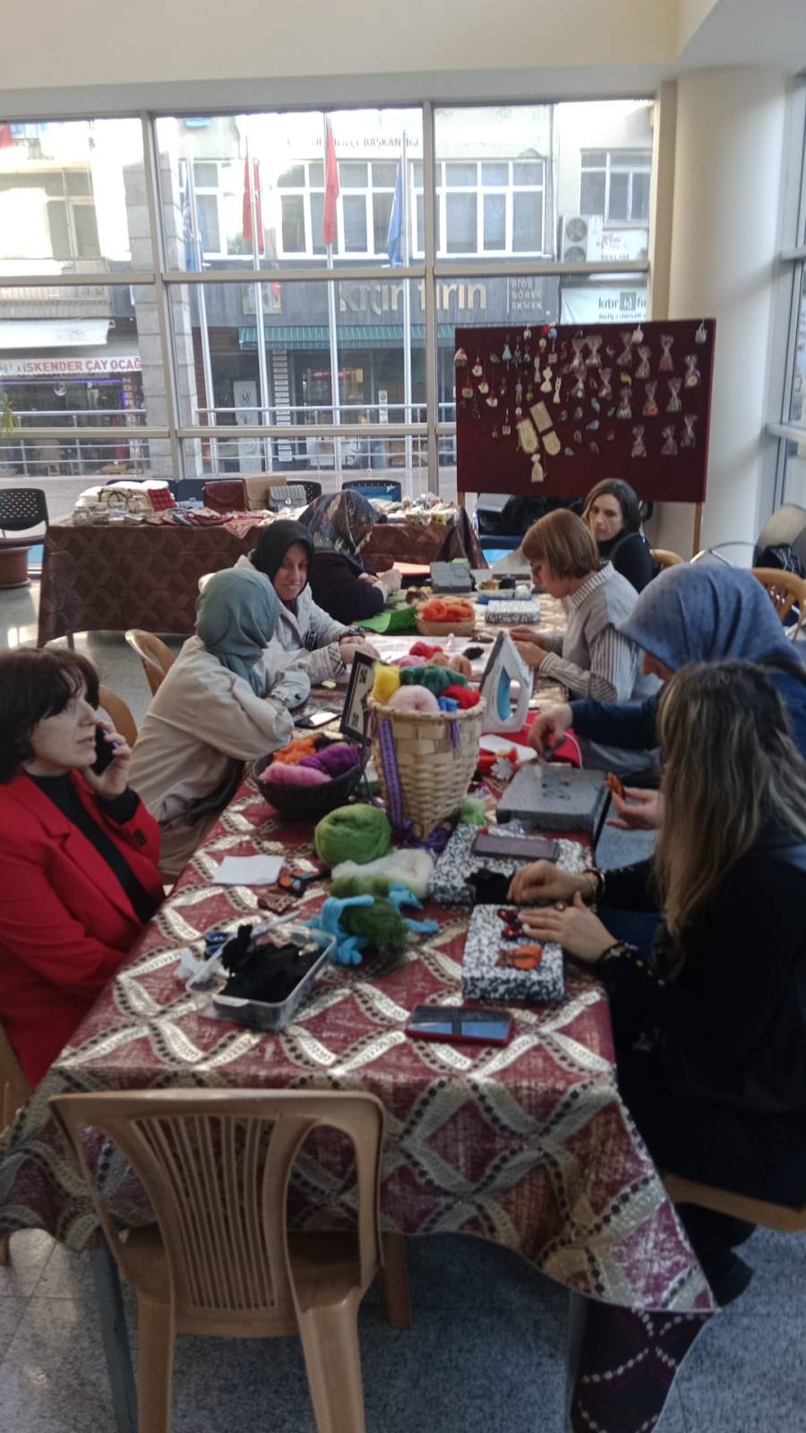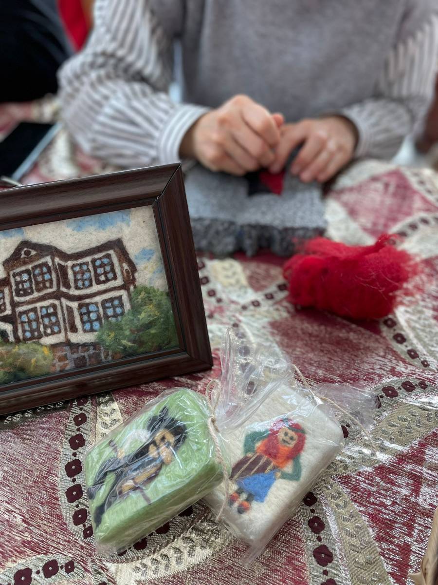 19 Aralık 2024 Perşembe Hamamızade İhsan Bey Kültür ve Sanat Merkezinde yeni mezunlarımızdan Burçin DEMİRAL, Fikriye EYÜBOĞLU, Esin KIRIMLI, Gülnur YAZICI, Hülya EROL, Asiye YILMAZ ÇALI ile katılımcılara ve ziyaretçilere Keçe Broş uygulaması yanında mini sergi ile dekoratif el sanatlarımızdan biri olan keçe iğneleme tekniğini tanıttık.