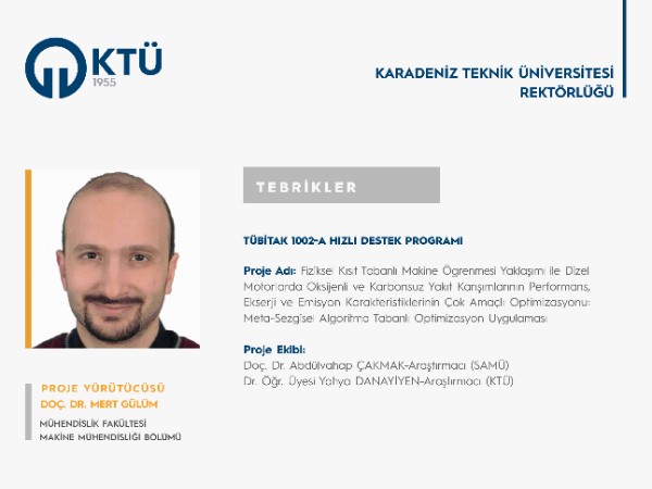 Projesi desteklenen akademisyenimizi ve proje ekibini tebrik eder, başarılarının devamını dileriz.
