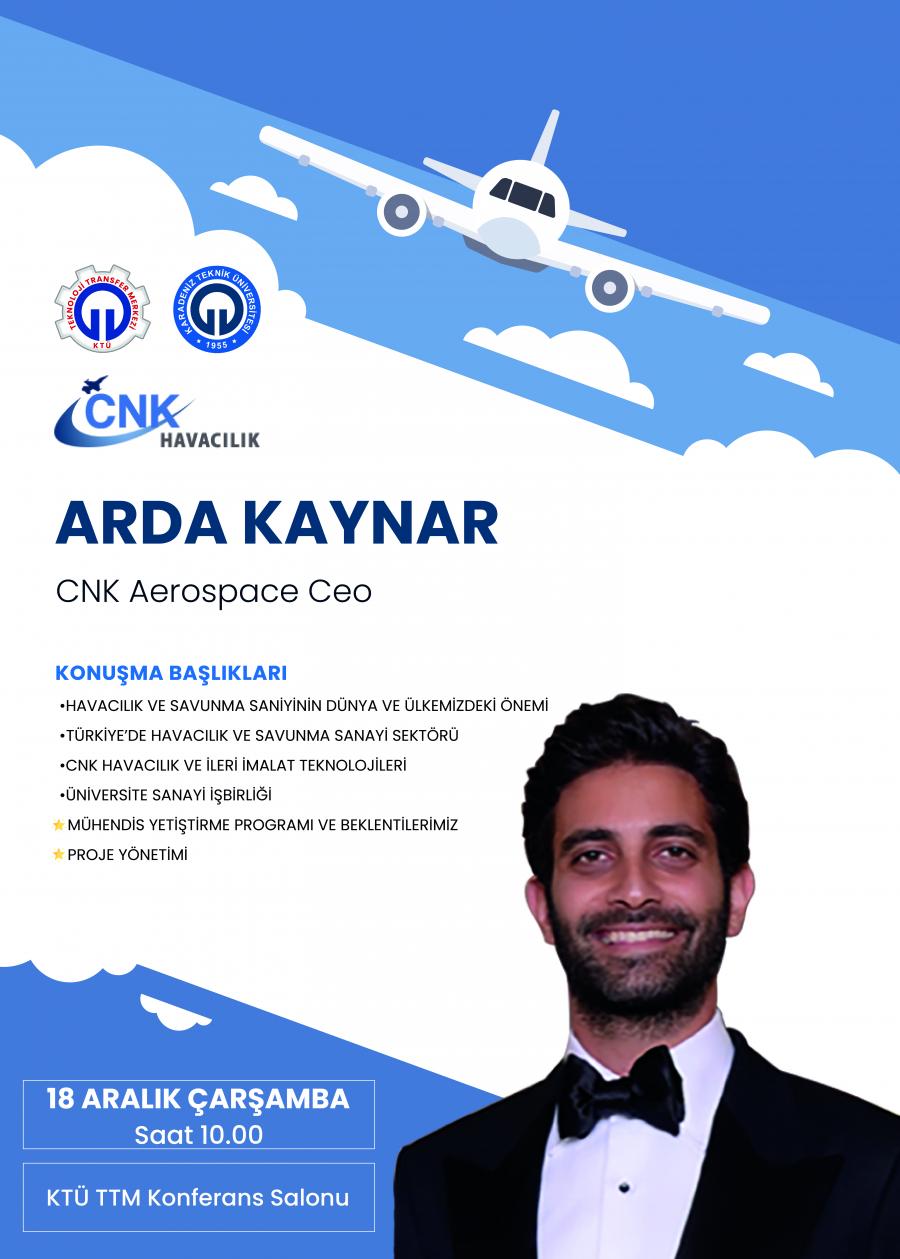 CNK Havacılık Ceo'su Arda KAYNAR 18 Aralık 2019 Çarşamba Günü KTÜ TTM'de!