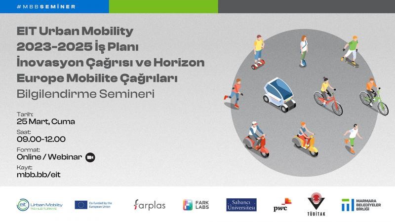 Marmara Belediyeler Birliği ve EIT Urban Mobility RIS Hub Türkiye ve TÜBİTAK Uluslarası İşbirliği Daire Başkanlığı işbirliğiyle 25 Mart 2022 Cuma günü, saat 09.00-12.00 arasında EIT Urban Mobility (Kentsel Ulaşım) 2023-2025 İş Planı İnovasyon Çağrısı (Call for Innovation for the Business Plan 2023-2025) ve Ufuk Avrupa (Horizon Europe) Programı mobilite alanı çağrıları hakkında bilgilendirme etkinliği düzenlenecektir.