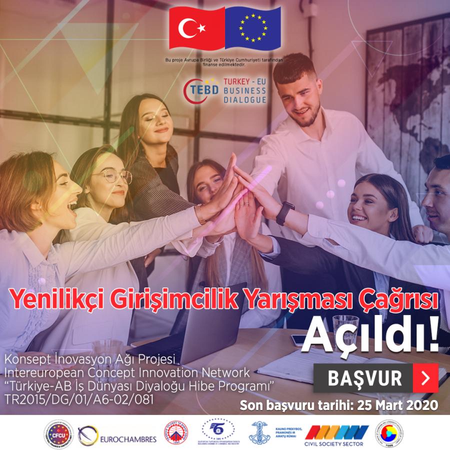 Türkiye – AB İş Dünyası Diyaloğu (TEBD) projesi kapsamında Trabzon Ticaret ve Sanayi Odası (TTSO) tarafından yürütülen, Karadeniz Teknik Üniversitesi'nin ise iştirakçi olarak yer aldığı "Konsept İnovasyon Ağı Projesi" ile birlikte Yenilikçi Girişimcilik Yarışması çağrı ilanına çıkmış bulunmaktadır.