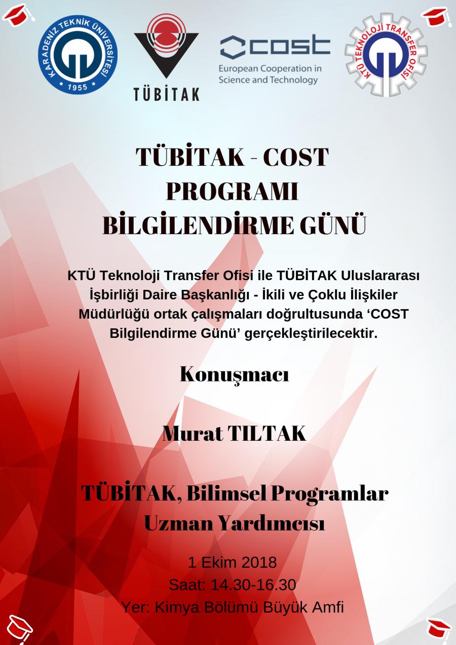 KTÜ-TTO ve TÜBİTAK Avrupa Birliği Koordinasyon Ofisi işbirliği ile KTÜ' de düzenlenecek olan Bilim Ve Teknolojide Avrupa İşbirliği Kuruluşu (COST) bilgilendirme gününün detayları aşağıdaki gibidir;