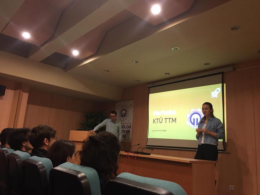 KTÜ Teknoloji Transferi uygulama araştırma merkezi tarafından Trabzon Merkez Fen Lisesi öğrencilerine girişimcilik eğitimi gerçekleştirildi. Eğitim gençbiz girişimcilik programının öğrencilere karşı muhtemel kazanımlarının değerlendirmesi ile başladı. Konuşma ardından KTÜ TTM Şirketleşme ve Girişimcilik uzmanı Proje Uzm. Eren YILMAZ tarafından gerçekleştirilen eğitim; girişimcilik ekosistemi, iş fikri sahiplerinin izlemesi gereken adımlar, finansal kaynaklara erişim ve dikkat edilmesi gereken önemli noktaların anlatımı ile devam etti. Eğitim öğrencilerin sorularının cevaplanması ile son buldu.