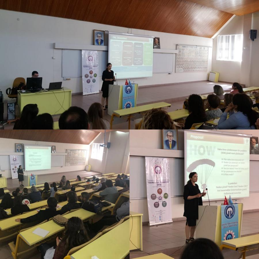 KTÜTTO’nunev sahipliği yaptığı ve iki oturum şeklinde gerçekleşen etkinlikte TÜBİTAK ERC Ulusal İrtibat Noktası Dr. Derya Dönertaş, ERC Programı hakkında sunumunu gerçekleştirdi. Hazırlık sürecinde dikkat edilecek hususlara da kapsamlı biçimde değinen Dr. Derya Dönertaş, deneyimlerini katılımcılar ile paylaştı.
