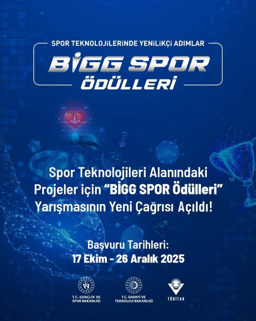 “BİGG SPOR Ödülleri” başlıklı yarışmanın başvuruları 26 Aralık 2025 tarihine kadar PRODİS eteydeb.tubitak.gov.tr adresi üzerinden alınacaktır.