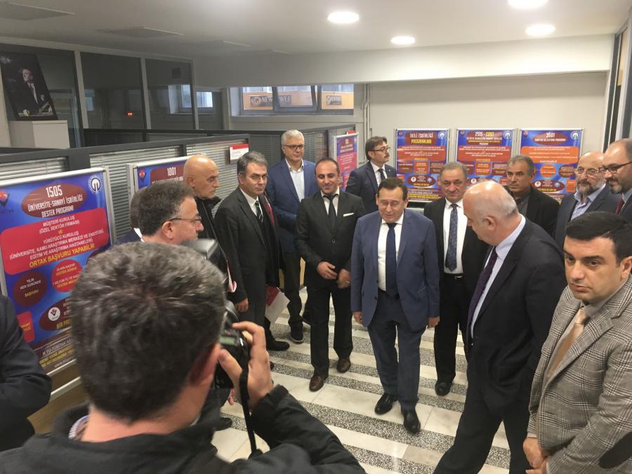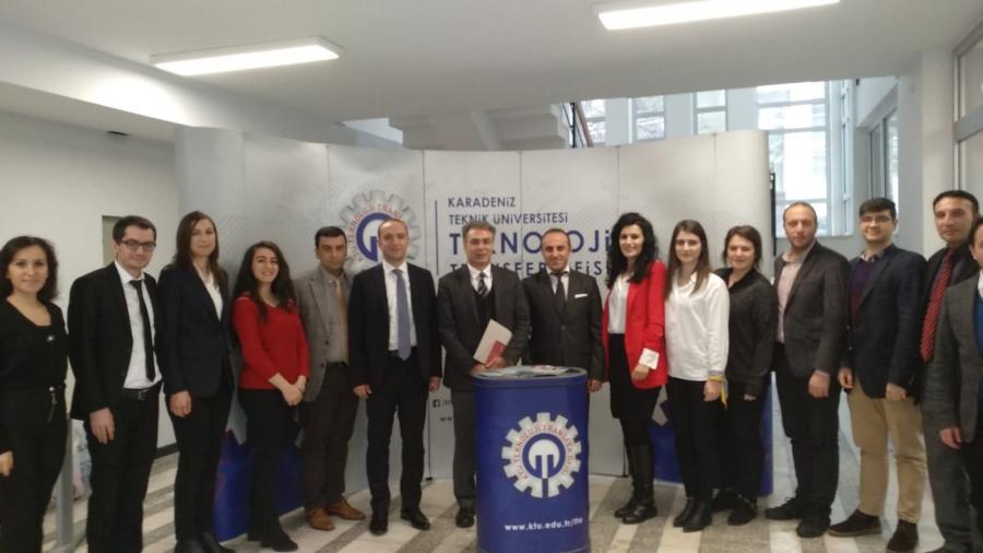 KTÜ Rektörü Prof. Dr. Süleyman BAYKAL ile KTÜ Rektör Yardımcıları Prof. Dr. Asım ÖREM, Prof. Dr. Halil İbrahim OKUMUŞ ve Prof. Dr. Hikmet ÖKSÜZ, KTÜ Rektör Danışmanları, Trabzon Ticaret ve Sanayi Odası Başkanı Suat HACISALİHOĞLU, Trabzon Ticaret Borsası Başkanı Eyüp ERGAN, Doğu Karadeniz İhracatçılar Birliği Yönetim Kurulu Başkan Yardımcısı Ahmet Hamdi GÜRDOĞAN, Doğu Karadeniz Kalkınma Ajansı Genel Sekreter Vekili Onur ADIYAMAN, KTÜ TTM Yönetim Kurulu Üyeleri ve kamu kurum temsilcileri KTÜ Teknoloji Transferi Uygulama ve Araştırma Merkezi’ni (KTÜ TTM) yeni yerinde ziyaret ederek KTÜ TTM Müdürü Doç. Dr. Oktay YILDIZ’dan merkez hakkında bilgi aldı.