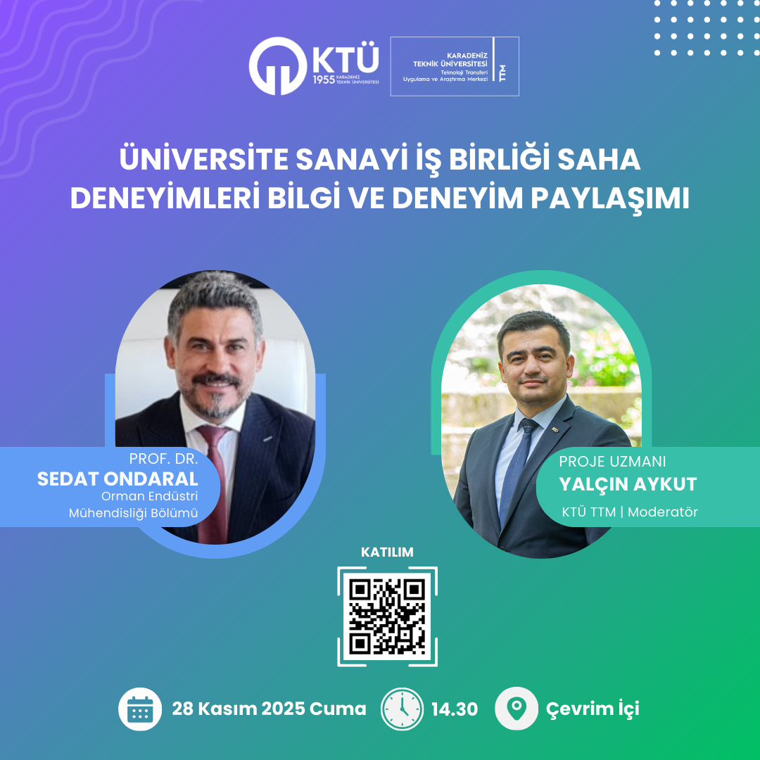 Bu etkinlik, KTÜ TTM’nin üniversitede üniversiteiş dünyası iş birliği farkındalığını artırma, araştırmacıların projelerini sanayi ile buluşturma süreçlerini güçlendirme ve akademik bilginin ekonomik değere dönüşmesine katkı sağlama hedeflerine hizmet edecektir.