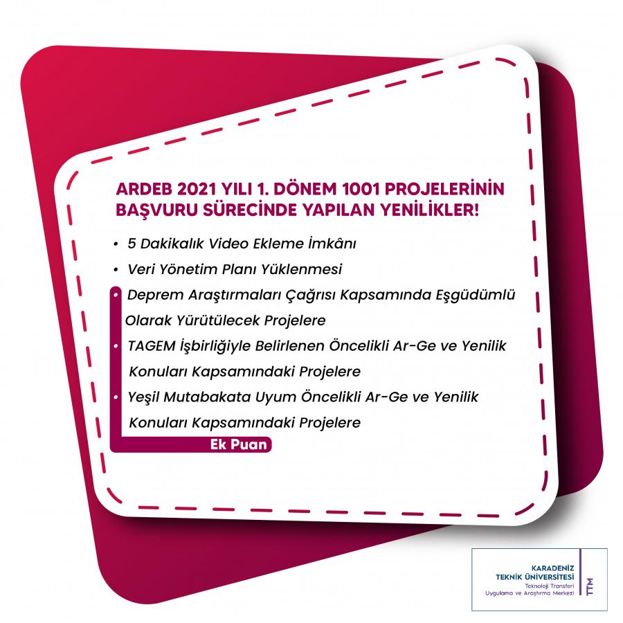 ARDEB 2021 Yılı 1. Dönem 1001 Projelerinin Başvuru Sürecinde Yapılan Yenilikler!