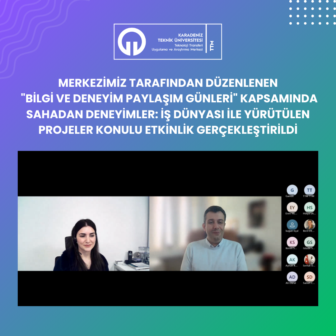 Merkezimiz tarafından düzenlenen Bilgi ve Deneyim Paylaşım Günleri etkinlik serisi, “Sahadan Deneyimler: İş Dünyası ile Yürütülen Projeler Bilgi ve Deneyim Paylaşımı” başlıklı deneyim paylaşımı ile devam etti.