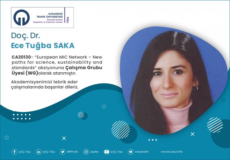 Üniversitemiz Fen Fakültesi Kimya Bölümü öğretim üyesi Doç. Dr. Ece Tuğba SAKA, COST Programı’nın “CA20130 - European MIC Network – New paths for science, sustainability and standards” aksiyonuna Çalışma Grubu Üyesi (WG) olarak atanmıştır.