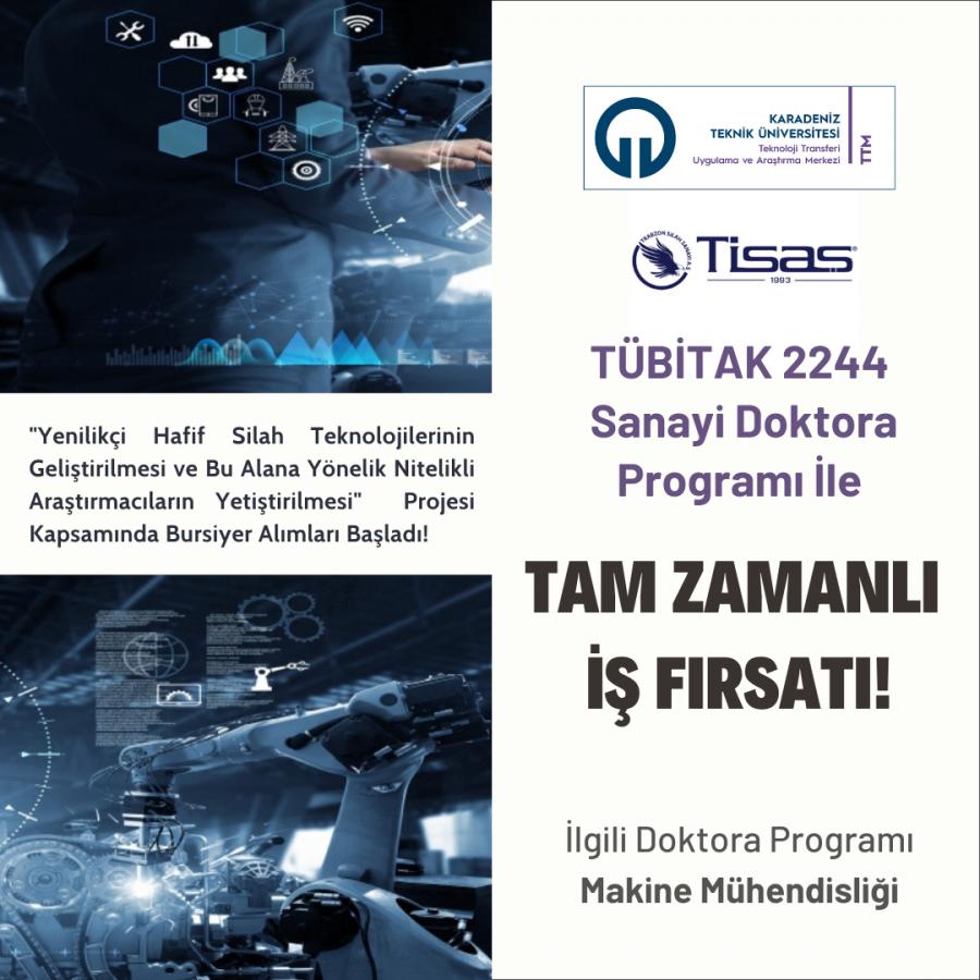 KTÜ-TİSAŞ TÜBİTAK 2244 Sanayi Doktora programı için savunma sanayi konularına ilgili, yüksek motivasyonlu, üretken takım arkadaşları arıyoruz.