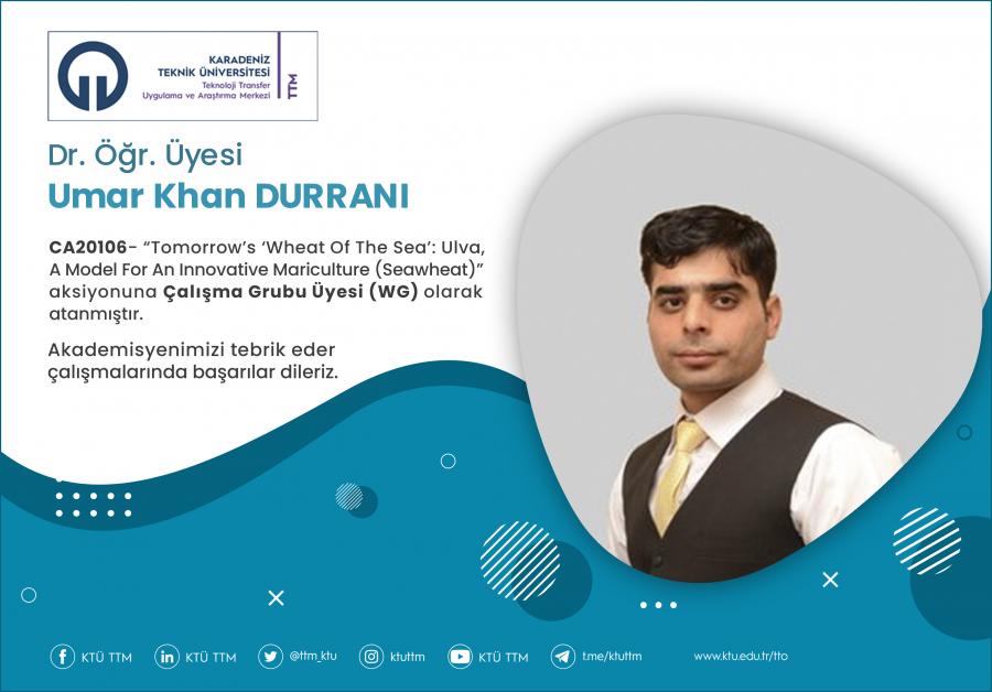 Üniversitemiz Deniz Bilimleri ve Teknolojisi Enstitüsü Öğretim Üyesi Dr. Öğr. Üyesi UMAR KHAN DURRANI, COST Programı’nın “CA20106 - Tomorrow’s ‘Wheat Of The Sea’: Ulva, A Model For An Innovative Mariculture (Seawheat) aksiyona Çalışma Grubu Üyesi (WG) olarak atanmıştır.