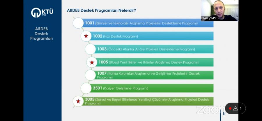 KTÜ Fen Bilimleri Enstitüsü lisansüstü öğrencilerine yönelik çevrim içi bilgilendirme etkinliği düzenlendi. Etkinlikte Lisans üstü öğrencilerinin başvuru yapabileceği TÜBİTAK ARDEB programları ve BİDEB Programları ile TÜSEB Yüksek Lisans ve Doktora programları hakkında bilgilendirme yapıldı.. Etkinlik KTÜ FBE Youtube kanalında canlı yayınlandı.
