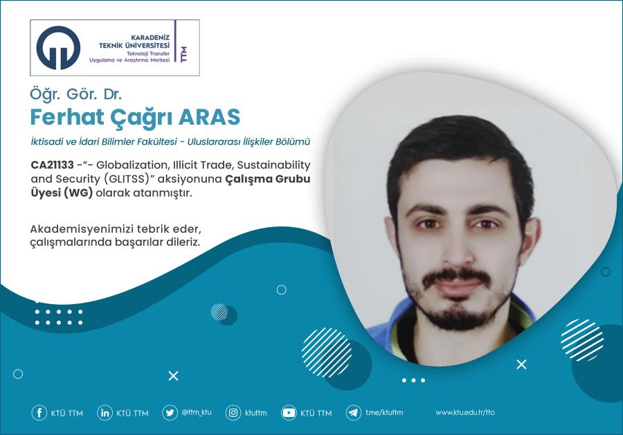 Üniversitemiz İktisadi ve İdari Bilimler Fakültesi Uluslararası İlişkiler Bölümü öğretim elemanı Öğr. Gör. Dr. Ferhat Çağrı ARAS, COST Programı’nın “CA21133 - Globalization, Illicit Trade, Sustainability and Security (GLITSS)” aksiyonuna Çalışma Grubu Üyesi (WG) olarak atanmıştır.