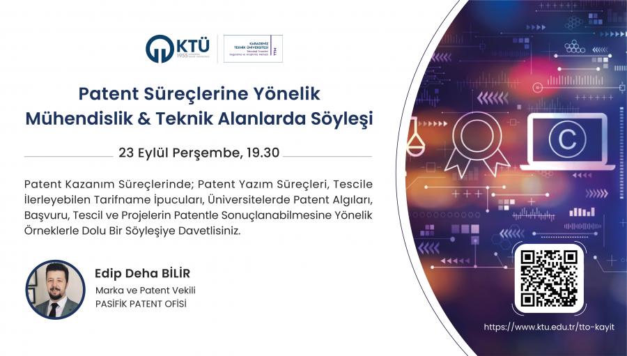 Patent Süreçlerine Yönelik Mühendislik ve Teknik Alanlarda Söyleşiyi takviminize eklemeyi unutmayın!
