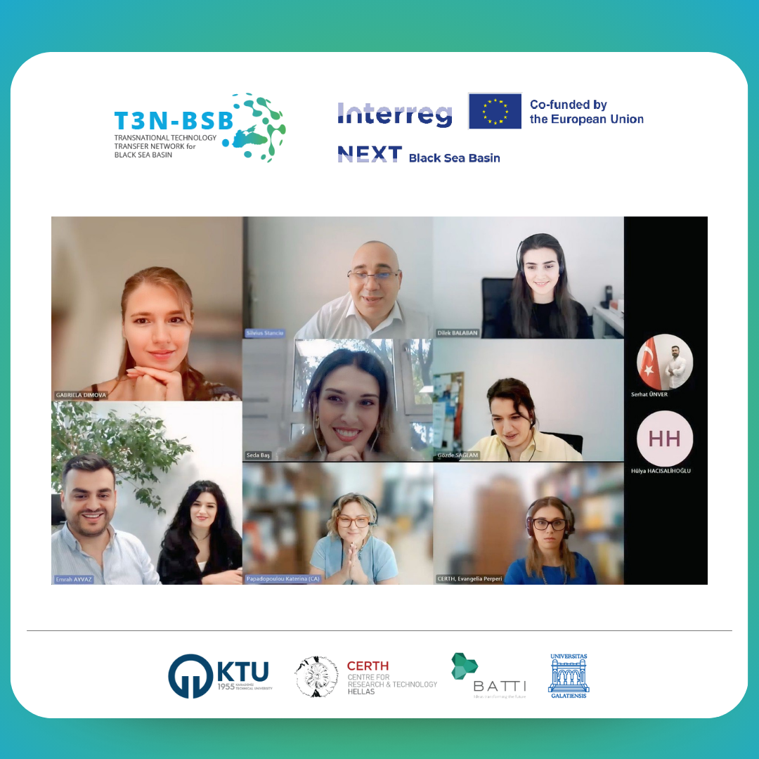 “Interreg VI-B NEXT Karadeniz Havzası” Programı kapsamında Türkiye’den Karadeniz Teknik Üniversitesi Teknoloji Transferi Uygulama ve Araştırma Merkezi (KTÜ TTM) yürütücülüğünde, Yunanistan’dan “Centre for Research and Technology Hellas” (CERTH), Bulgaristan’dan “Bulgarian Association for Transfer of Technology and Innovation” (BATTI) ve Romanya’dan “Dunarea de Jos” University of Galati (UDJG) ortaklığında yürütülen “T3N-BSB Karadeniz Havzası için Ulusötesi Teknoloji Transfer Ağı” Projesi kapsamında tüm ortakların katılımıyla 2. Çevrim İçi Konsorsiyum Toplantısı gerçekleştirildi.