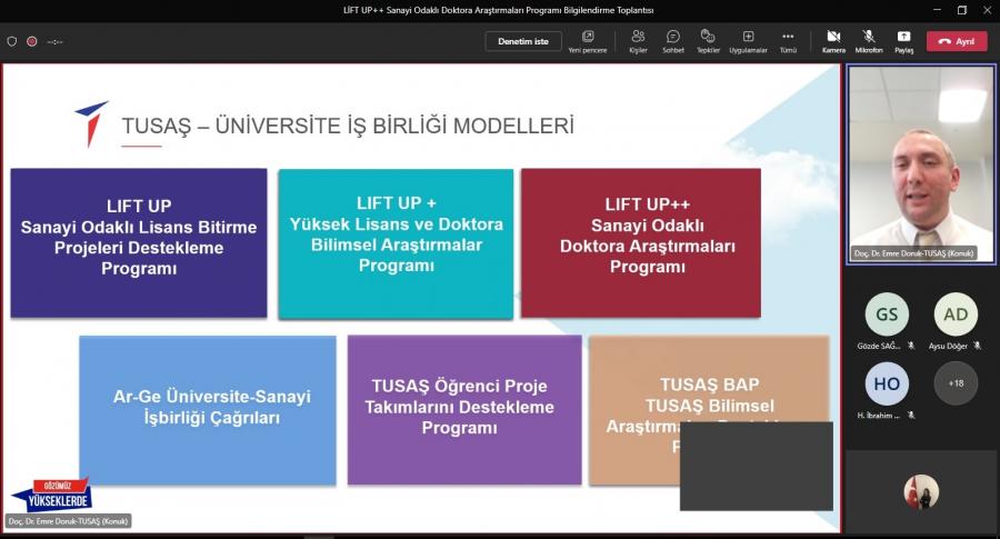 Etkinlikte TUSAŞ’ın yürüttüğü LIFT UP programlarından detaylı olarak bahsedilmiş ve etkinlik sonunda katılımcılardan gelen sorular cevaplandırılmıştır.