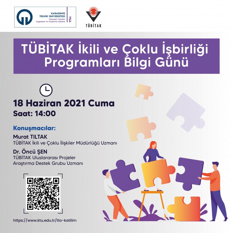 KTÜ TTM organizasyonuyla; TÜBİTAK Uluslararası İşbirliği Daire Başkanlığı Uzmanları tarafından, TÜBİTAK İkili ve Çoklu İşbirliği Destek Programları’nı tanıtmak, araştırmacılarımızın sorularını yanıtlamak ve ihtiyaç duydukları destek türlerine dair görüş alışverişinde bulunmak amacıyla 18 Haziran 2021 Cuma Günü Saat: 14.00’da Üniversitemiz araştırmacılarına bir bilgilendirme sunumu gerçekleştirilecektir.