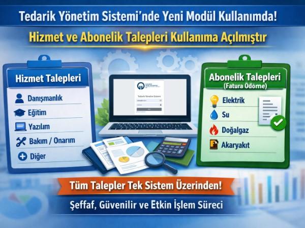 TYS üzerinden Hizmet (danışmanlık, eğitim, yazılım, bakım/onarım) ve Abonelik / Fatura Ödeme (elektrik, su, doğalgaz, akaryakıt) talepleri alınmaya başlanmıştır.