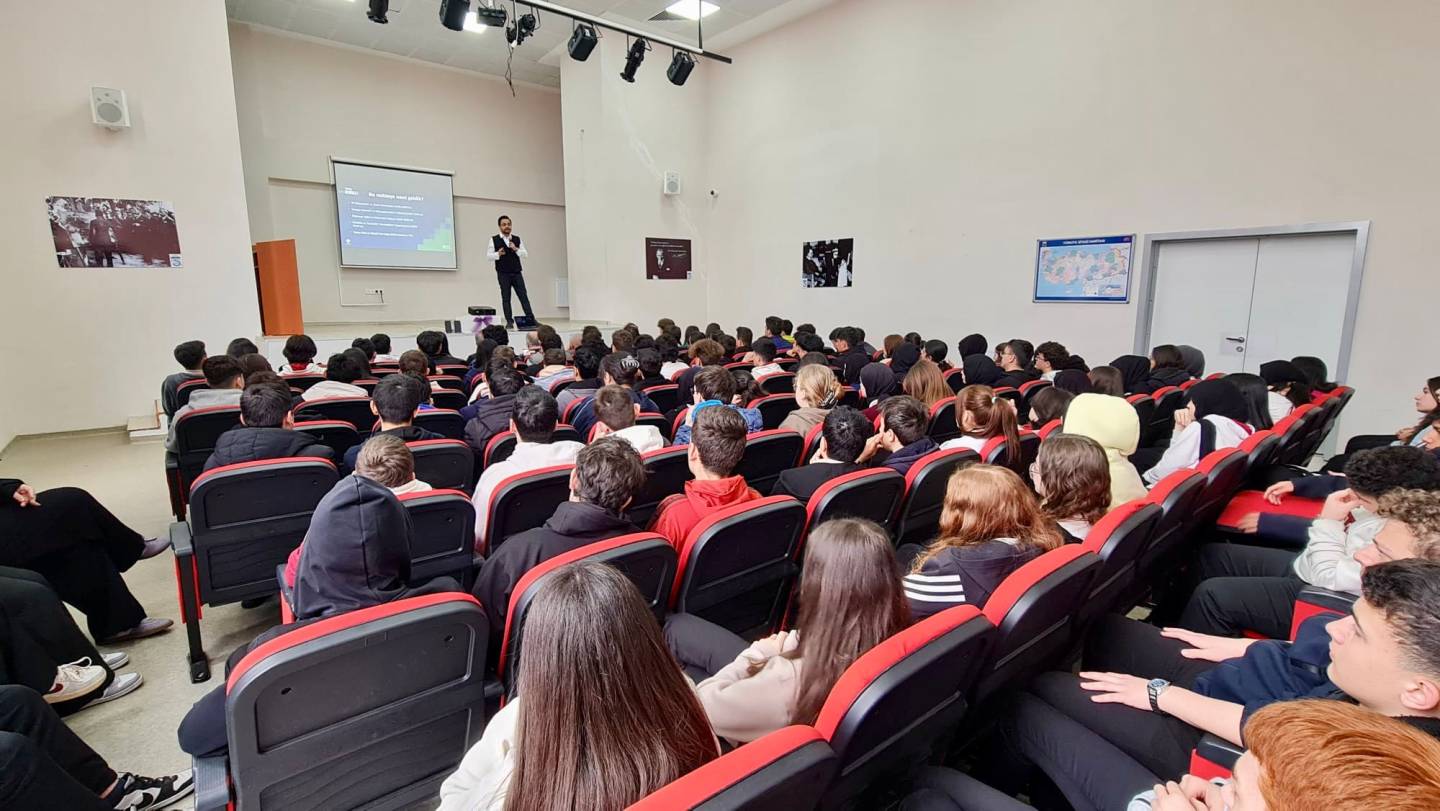 Söyleşide yapay zekânın temel kavramları, günlük yaşamda kullanım alanları ve gelecekte eğitim, sağlık, güvenlik ve teknoloji alanlarında oluşturacağı dönüşüm ele alındı. Öğrenciler, yapay zekâ teknolojilerinin nasıl çalıştığı ve geleceğin mesleklerine nasıl yön vereceği konusunda bilgi edinme fırsatı buldu.